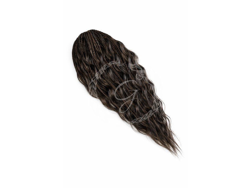 Používá se vysoce kvalitní syntetické vlákno, vlnitý Kanekalon, pro jeho realistický vzhled a vlastnosti podobné lidským vlasům.